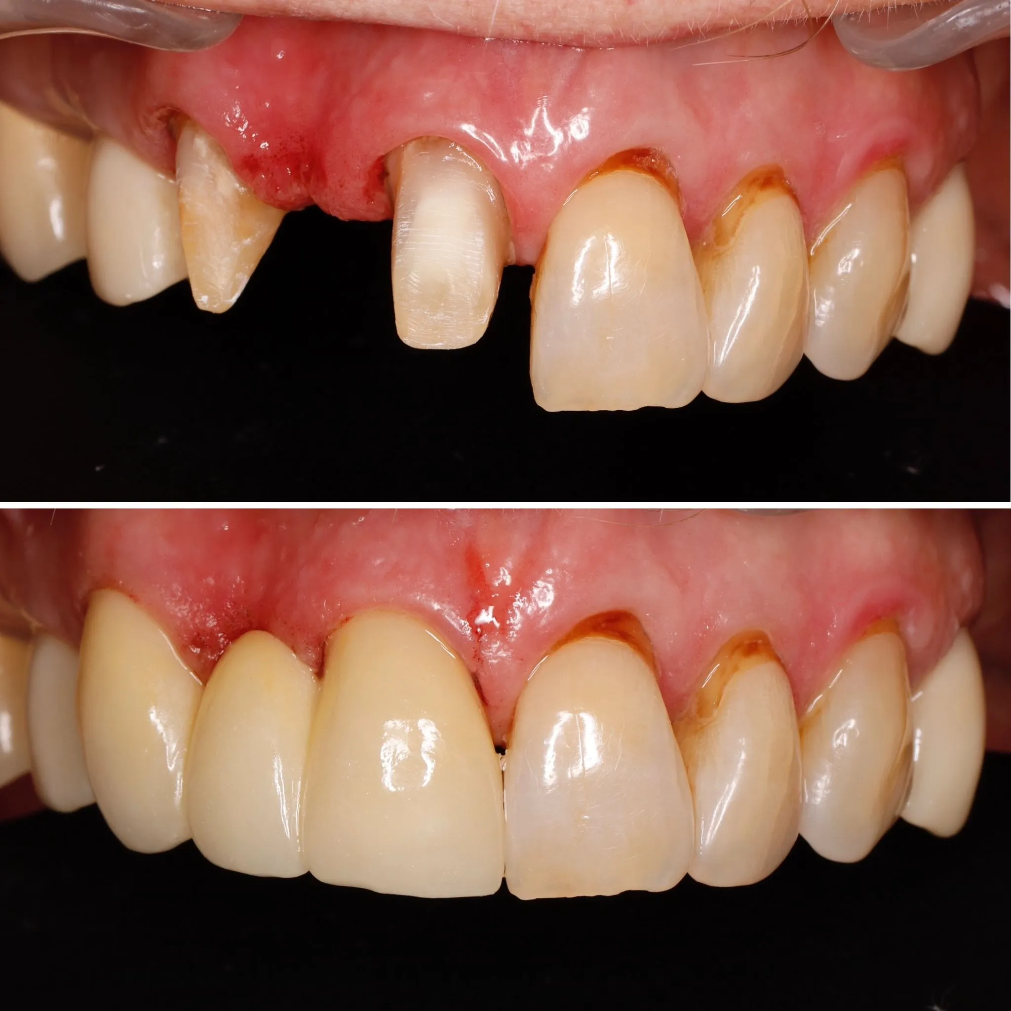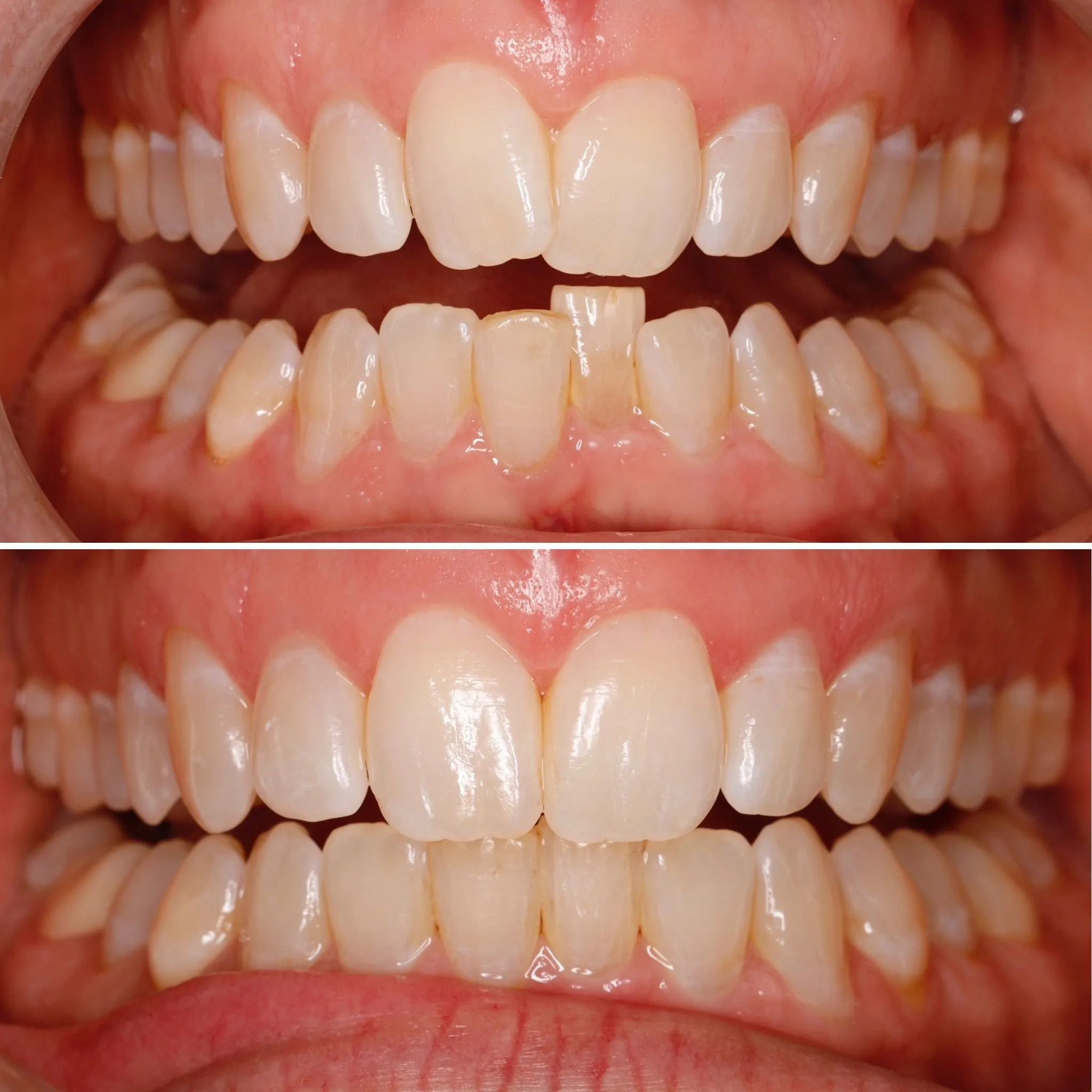 A front tooth that continued to fracture due to prior failing composite bonding. This was meticulously treated with proper bonding protocols to ensure a long lasting composite bonding that blends beautifully.
